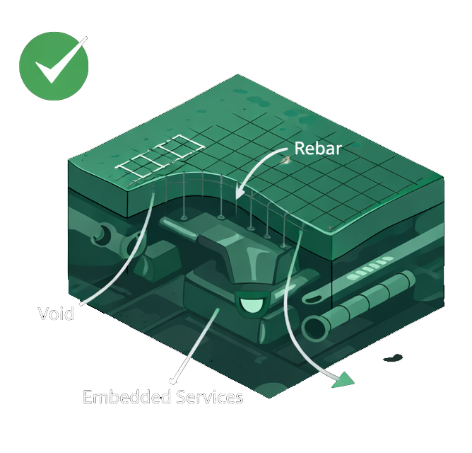 - Comprehensive profiling with exact reinforcement layout, slab thickness, and embedded service mapping
